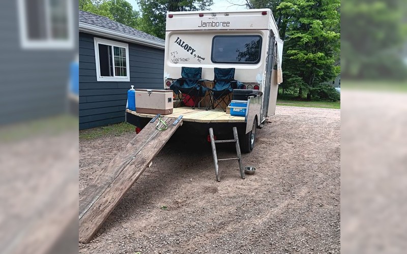 I could see this working for a snowmobile or two if the bed were longer. I’d also want to figure out a better and safer ramp system; the one on there now looks a little sus, as the kids say. As does the open-end board bed. Some finishing details are needed for sure, but for $5,000, you can’t expect a $100,000 toy-hauling RV. I like what the creator of this rig has done so far.