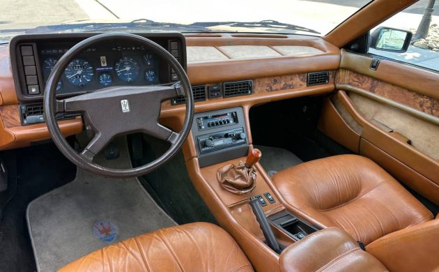 This isn’t the engine a child would draw in art class when the teacher gives that as an assignment, but with some detailing, it could look nice. This is Maserati’s 2.5-liter SOHC V6 with 192 horsepower and 233 lb-ft of torque when new. That doesn’t sound like a lot, and it isn’t, but it propels this 2,700-pound car to 60 mph in around 6,5 seconds, give or take. Maserati was the first company to use twin turbos in a production car, so that’s a fun fact. Getting to your destination will be fun with the ZF 5-speed manual, and the seller says this car starts and runs well. Have any of you owned a Biturbo?