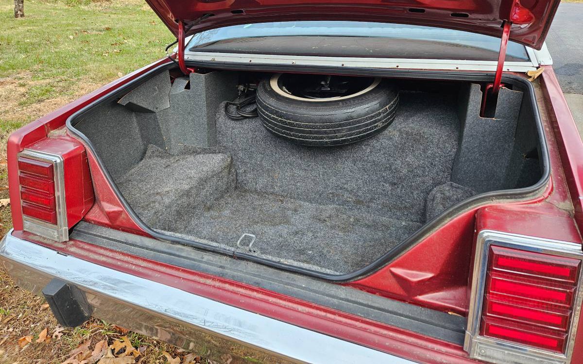 The interior is fairly basic for what we normally think of as a luxury car. The first thing I look for is usually the last thing on anyone else’s mind: power windows. This car doesn’t have them, and we never had options like that on our vehicles growing up, even my dad’s 1970 Olds 98 had roll-up windows. Since then, it’s the first thing I’ve wanted. Maybe there’s some sort of psychological study in my future, although it’s probably too late for that now. It looks outstanding inside this car, with maybe some discoloration on the steering wheel, unless that’s a trick of light and shadow. The back seat looks equally perfect, as does the huge trunk, with maybe some rearranging of the fiberboard panels waiting for the next owner.