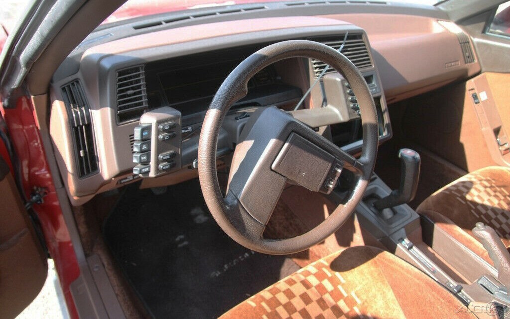 The XT was made from 1985 to 1991 and they were very unusual and very cool. The wedge shape and pop-up headlights gave them a then-cool and now-dated-but-somehow-still-cool appearance. You can see the off-set steering wheel, almost like a Citroen, and the pistol-grip shifter and that crazy 1980s Space Ranger dash! Yes, this one appears to have a digital dash although the seller says that it needs a battery. The interior is beautiful with those unique seats, although the back seat doesn’t have the same fabric. If this were mine I’d have my favorite upholstery shop add inserts to match the front seats, if I could find that fabric that is. There is also a pop-up moonroof and it appears to work.