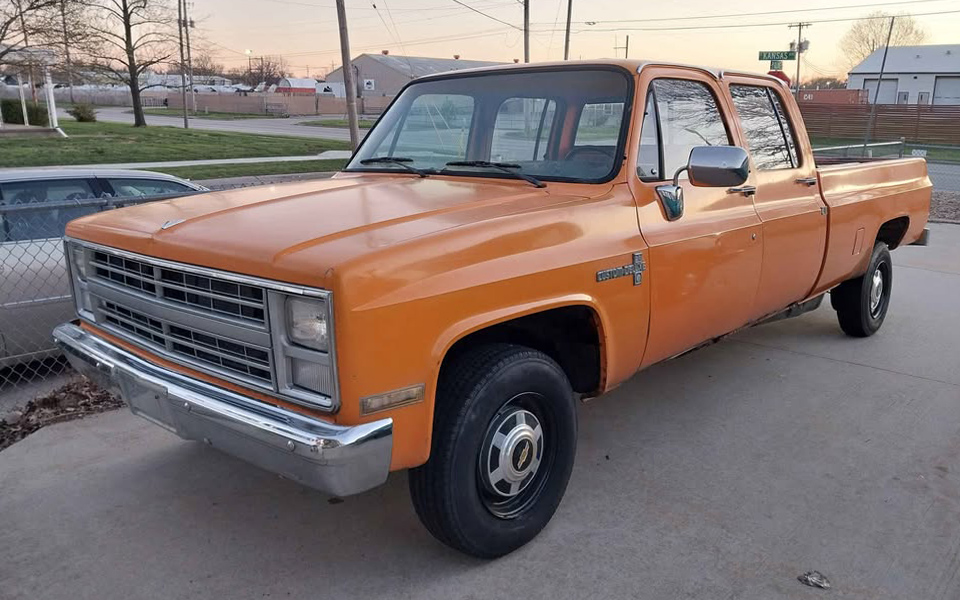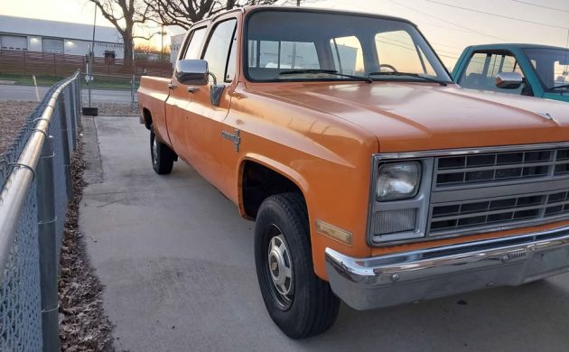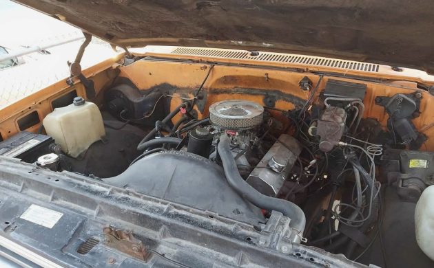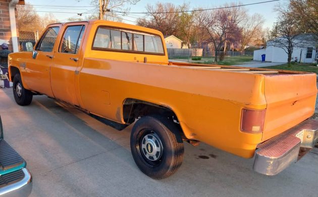 Here’s what would have replaced whatever engine was in this truck. Without a VIN, we don’t know what that was, but the seller says this is a 327-cu.in. OHV V8 with a four-barrel carb out of a 1968 Camaro. It would have had 275 (gross) horsepower and 355 (gross) lb-ft of torque in 1968. It’s backed by a GM Turbo-Hydramatic 400 sending power to the rear wheels. They say it runs and drives well, the engine doesn’t smoke, and there are two gas tanks. If I had a bigger garage and an extra $8,500, I’d take a road trip to Kansas to check this one out. Would any of you drive a huge truck like this 3+3 Crew Cab?