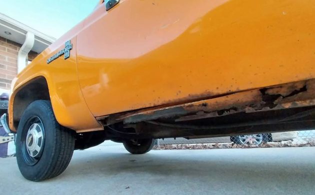 Sadly, the seller is light on interior photos. In fact, there are exactly zero interior photos! I know. They say it has all original paint and interior, and they list the interior color as tan (Saddle Tan), but that’s literally the only mention of the interior. I don’t get it, but I stopped trying to understand humans in 2020. You can see that it needs rocker panels on both sides, and here’s an underside photo. There’s a bit of rust to deal with here, but hopefully it’s just on the rockers.