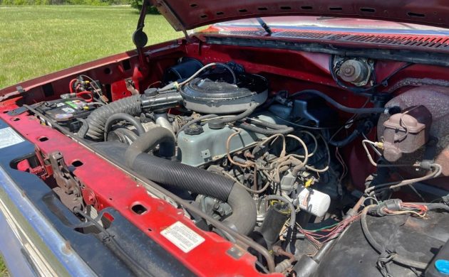 Inside the short bed looks good, but with a heavy coat of surface rust, and inside the truck cab looks even better. A big thing with this truck is the four-speed manual, which I believe is a T-18 with a low “granny gear”, or as the seller says, a bulldog gear. This is a seventh-generation F-Series, and they were made from 1979 for the 1980 model year, until the end of 1986 here and longer elsewhere.