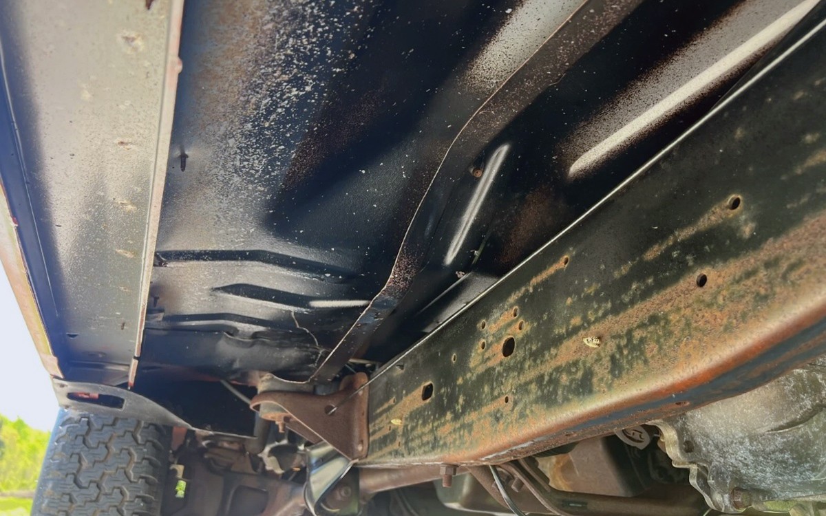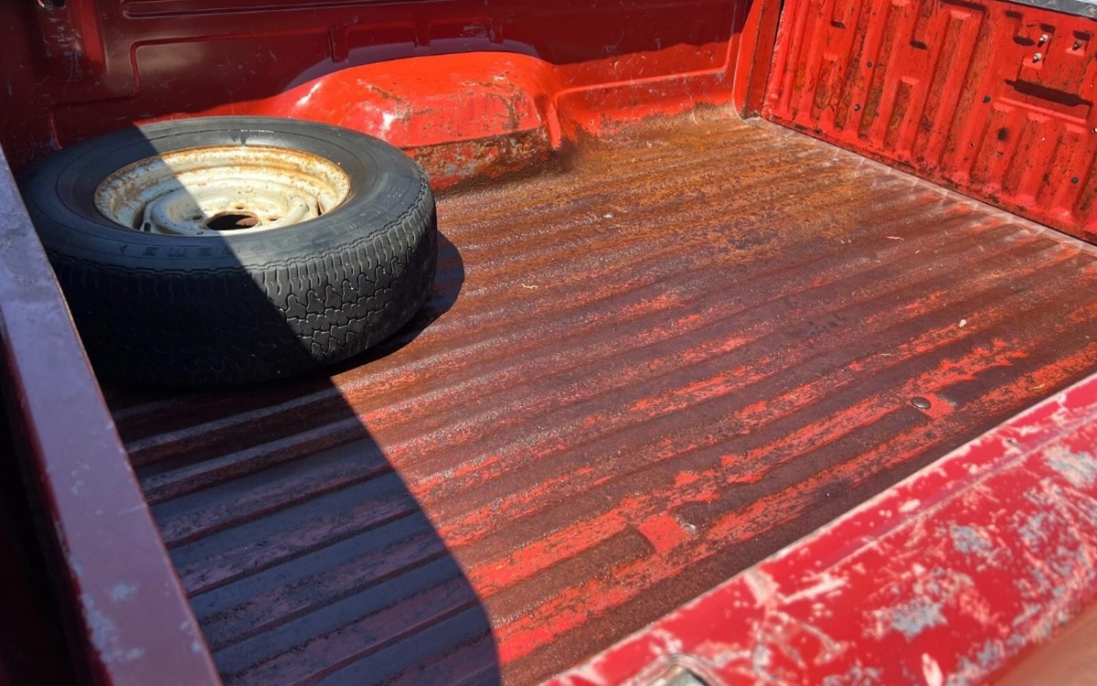 I’m not sure what’s going on with the tailgate, but there are a few other issues with the body on this one. You can see the driver’s side rear wheel rust, and there are a few nicks and scratches elsewhere. The seller has provided two great YouTube videos, here and here, and you can see that the passenger side door and part of the front edge of the bed appear to be faded for some reason. But, check out the many underside photos they’ve included; it looks fantastic underneath.