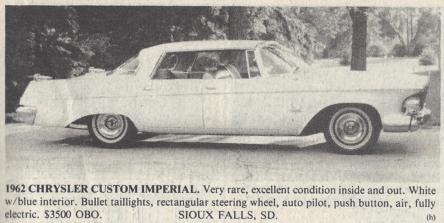 I assume on the 62 Imperial the “auto pilot” means cruise control. Anyways, the Imperial seems to be a good buy when looking at Hagerty’s #3 values of approx.$10,000. It would have to have all the unique 1962 trim pieces as those would be near impossible to find as so few 1962 Imperials were even produced.