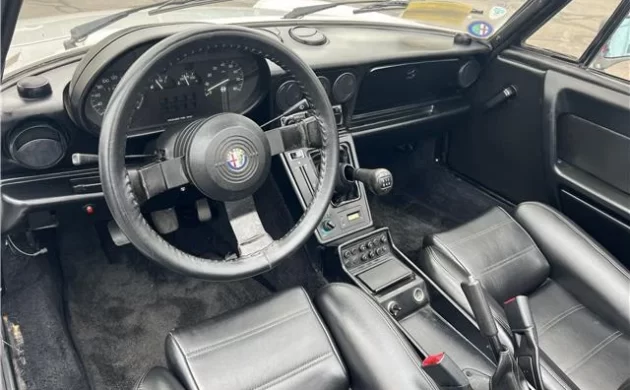 There’s conflicting information out there about the interior color scheme on the Quadrifoglio versions; some sources say a two-tone interior came standard, with red carpeting contrasting with whichever leather choice the owner ordered, but I don’t think that’s the case. The Quadrifoglio came with leather seats and a matching hardtop, and the carpets were anyone’s guess. The interior of this Spider remains in fine shape, no doubt helped by its Massachusetts residence that ensures the sun was never intense enough to bake the interior. Still, the other issue is rust, potentially, so get a look underneath before committing to buy.