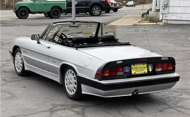 We see Alfa Romeo Spiders pop up for sale fairly often, but the Quadrifoglio version appears far less frequently. The four-leaf clovers on the side of Alfa Romeo products has long stood for a high-performance specification that takes an already entertaining driver and makes it even more so. This designation on the side of a Spider hasn’t made many waves over the years because the actual performance numbers didn’t change very much, but the changes were still worth nothing. This 1987 Alfa Romeo Spider listed here on eBay is offered with no reserve and looks handsome with a silver over black interior.