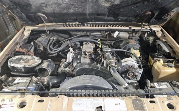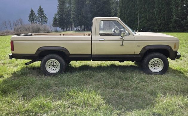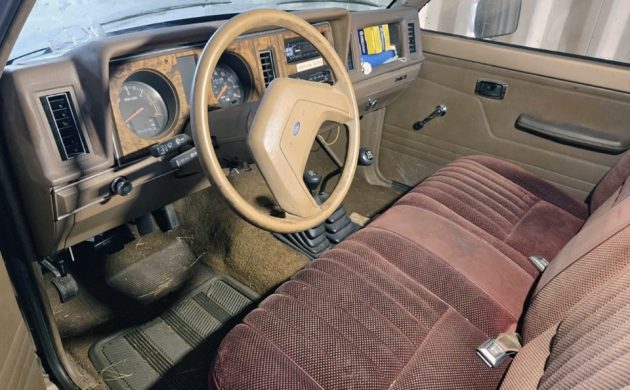 We’ve seen a couple of Mazda-sourced Perkins diesel engines in Rangers, but this one is a Mitsubishi 4D55 2.3-liter OHC turbocharged diesel with around 86 horsepower and 134 lb-ft of torque when new. Passing through the transfer case and five-speed manual to all four wheels as needed, the seller says it starts, runs, drives, and stops. That’s rarely a glowing recommendation in my world, but at least it works. The injector pump and timing belt were replaced around 8,000 miles ago. Have any of you owned a diesel Ford Ranger?