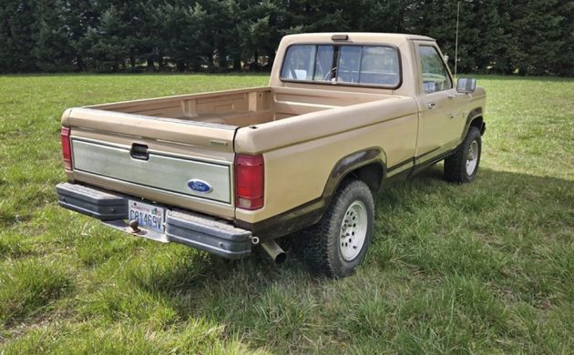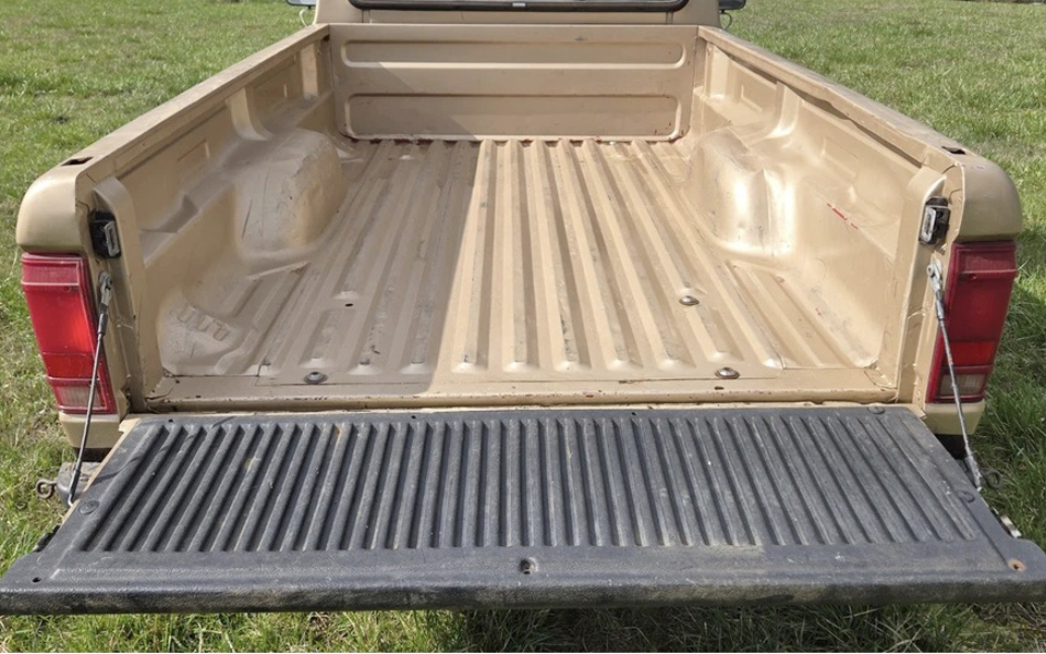 The first-generation Ranger was made from 1982 for the 1983 model year until the end of 1992 in regular cab models and SuperCab models. This truck appears in nice condition, other than some pesky rust starting to show up underneath. Also, the rear gas tank strap broke a couple of years ago, and the seller put a strap on it. You’ll want to replace that asap. Here’s what it looks like inside the box/bed. I’m guessing it had a full liner to match the one on the inside of the tailgate, but it must have gone away at some point.