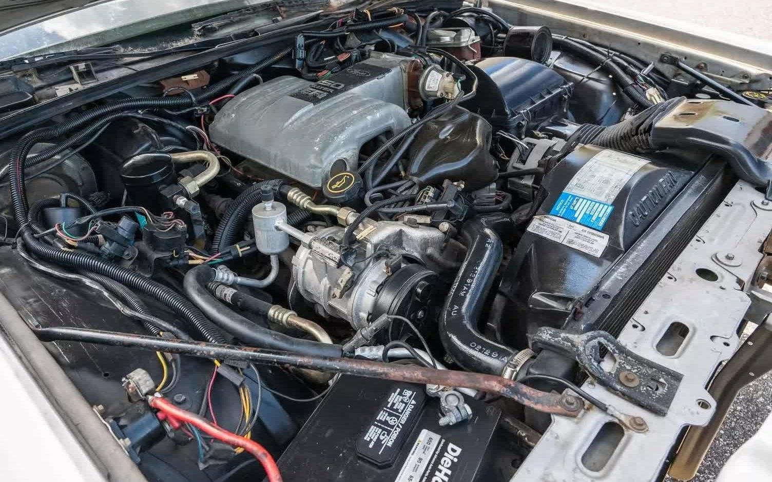 Fox body Mustang fans will spot familiar parts here, most notably the port fuel-injected 5.0L (302 cid) V8 making 150 HP and 270 lb-ft of torque (160/280 with towing package). The plenum intake helps build that torque, and the Colony Park could tow up to 5000 lb. Speaking of pounds, this 4000 lb mega-wagon weighs only about one teenager more than a 2024 Mustang GT. Thanks to lov2xlr8 for its library of factory brochures. After a backpack sprayer load of shiny spray, the engine compartment looks better than most of this vintage. Few powertrains would be easier and cheaper to keep alive, and single-computer engines from this era represent the pinnacle of simple reliable engine management. Would you consider daily driving this well-equipped ’80s people-mover?
