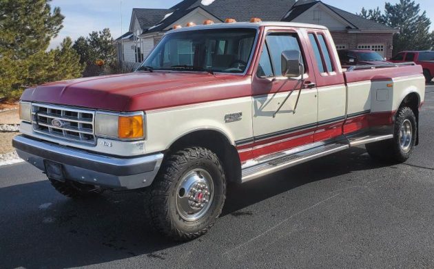 What a nice truck! I should probably be more objective, sorry about that. This 1988 Ford F-250 XLT Lariat 4×4 SuperCab Dually looks perfect in Scarlet Red over (and under) Colonial White and I wouldn’t change a thing, even though it’s showing some fading on the top of the hood. The seller has it posted here on craigslist in Parker, Colorado and they’re asking $11,500. Here is the original listing, and thanks to Mike F. for the tip!