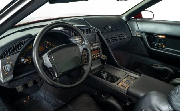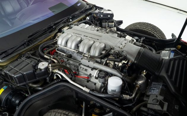 The ZR-1 added a whopping $27,016 to the Corvette’s sticker price, and Chevrolet delved deep into its toybox to ensure that the interior met buyer expectations. This car features airbags, climate-controlled air conditioning, power operation for the windows, locks, seats, and mirrors, cruise control, a trip computer, low tire pressure warning, and a Delco Bose Gold Series stereo with a cassette and CD player. The interior presentation is all that you would expect, with no wear on the seat leather and no signs of other physical damage or deterioration. It is in as-new condition, as I would expect from this particular classic.