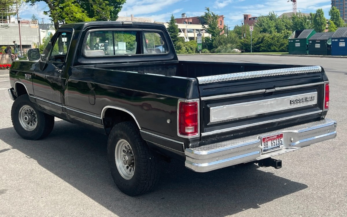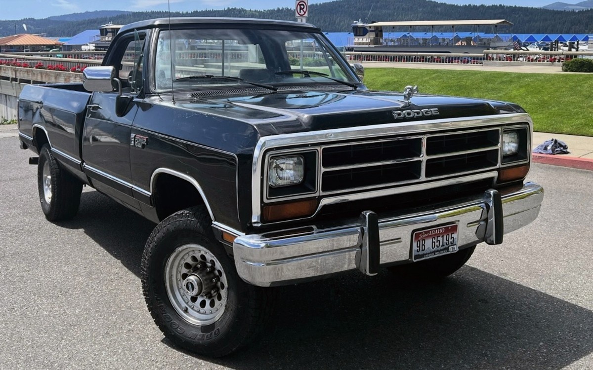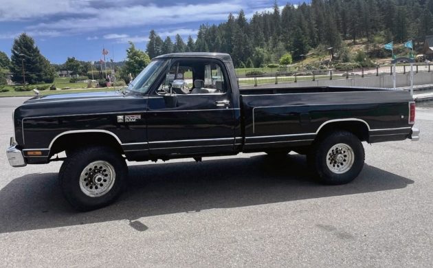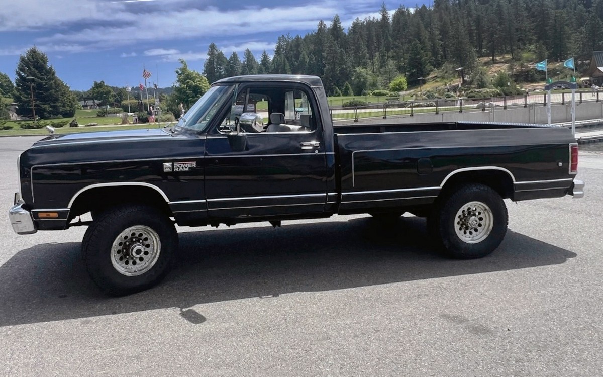 As if a person needed another reason to visit impossibly beautiful Coeur d’Alene, Idaho, that’s where this black 1990 Dodge Power Ram W250 LE 4×4 Diesel pickup is located. Fly in and drive it home, listening to that sweet Cummins diesel and getting 15+ mpg if you take it easy. It’s listed here on eBay, there is no reserve, and the current bid is $15,100.