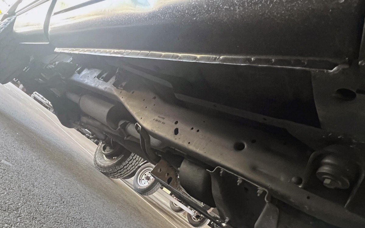 The entire underside looks like it has been painted “rebuild black.” Hopefully it is just a protective coating and the seller is not hiding anything.