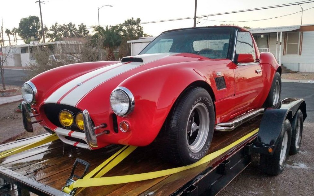 Power appears to be a 350 CI, Chevrolet V8 engine, supposedly a 365 HP variant – the seller isn’t specific but that’s the more powerful of the two Chevrolet engines offered and it works through a three-speed automatic transmission. The seller provides no information regarding this Cobra’s operating prowess other than to say it “runs drives”.