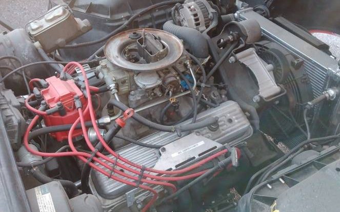 The interior has an early ’90s “chunky” vibe to it with some of the components reportedly boosted from the Cadillac Cimarron. The lighting of the image causes the upholstery to appear as being blue but I believe it to be black in actuality. Both seats obviously need some attention but the rest of the environment presents itself well enough. The instrument panel looks like it was borrowed from a boat.