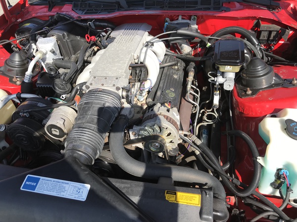 The Heritage Edition is simply an appearance package, and provided no mechanical or performance upgrades. Thus, under the hood sits a Tuned Port Injection 305 cubic inch V8 engine. The seller, a dealer in Van Nuys, received this car in non-running condition from Washington state. A new battery and pick up coil later, it was running and passed CA smog. The original exhaust was no longer attached or in good condition, so it was replaced with a 3″ Summit cat-back exhaust. Though the air condition will need to be serviced in order to function, the engine is said to be in good running condition.