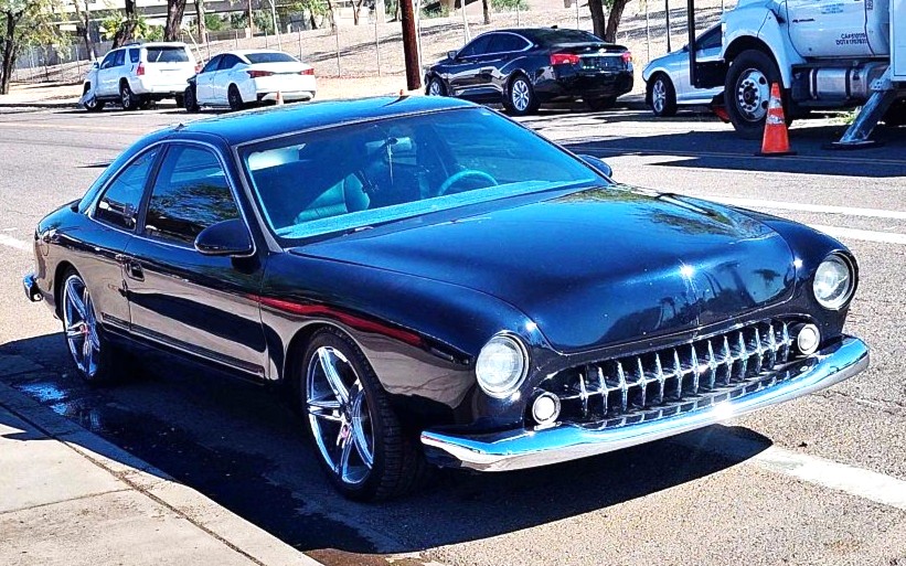 Transformations that swap out body panels on vehicles are usually hit-or-miss, and it’s especially risky when the cars are from completely different eras. However, the blend of a ’51 Mercury front onto a 1993 Lincoln Mark VIII actually works pretty well here, with this unusual creation also said to score high marks in the mechanical department. If you’ve been in the market for a guaranteed attention-getting luxurious coupe from another century, this one is located in Phoenix, Arizona, and can be seen here on Facebook Marketplace. It’s priced at $7,000, and we’d like to thank readers Rocco B. and Mitchell G. for both finding this oddity and sending in the tips here!