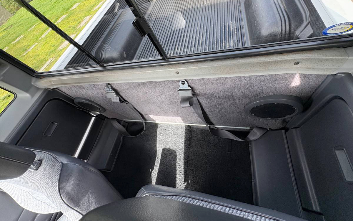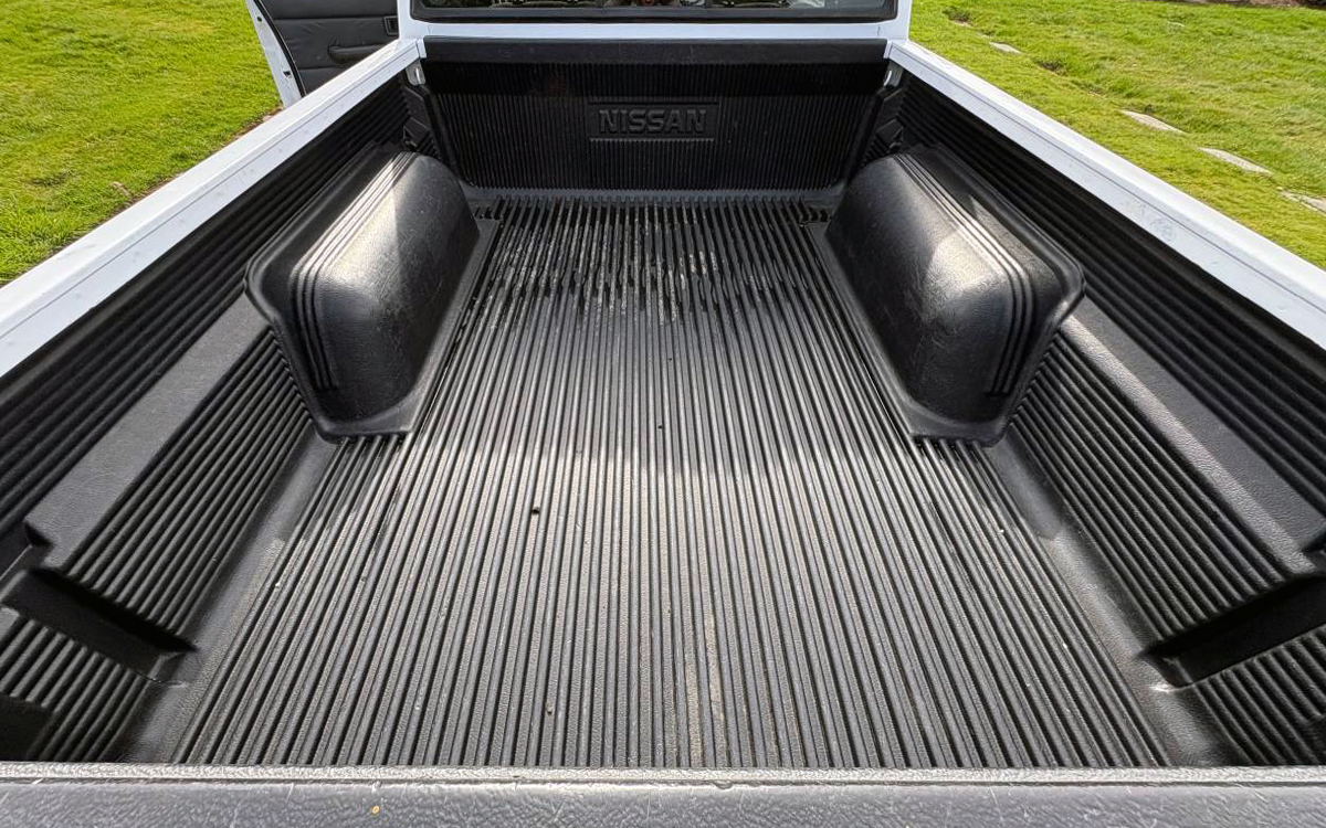 The D21 Hardbody pickups were offered in the U.S. from 1985 through 1997, in rear-wheel drive and 4WD, and in single and extended-cab versions that Nissan referred to as the King Cab. It’s the perfect cab size, in my opinion. There is enough room back there to at least somewhat hide your luggage or other gear, and you can haul a couple of actual humans back there in a pinch when you fold down the hidden seats on each end. The rest of the interior looks nice, other than some obvious sagging on the left side bolster of the driver’s seat. The cool part, other than this truck having 4WD, is seeing the 5-speed manual.