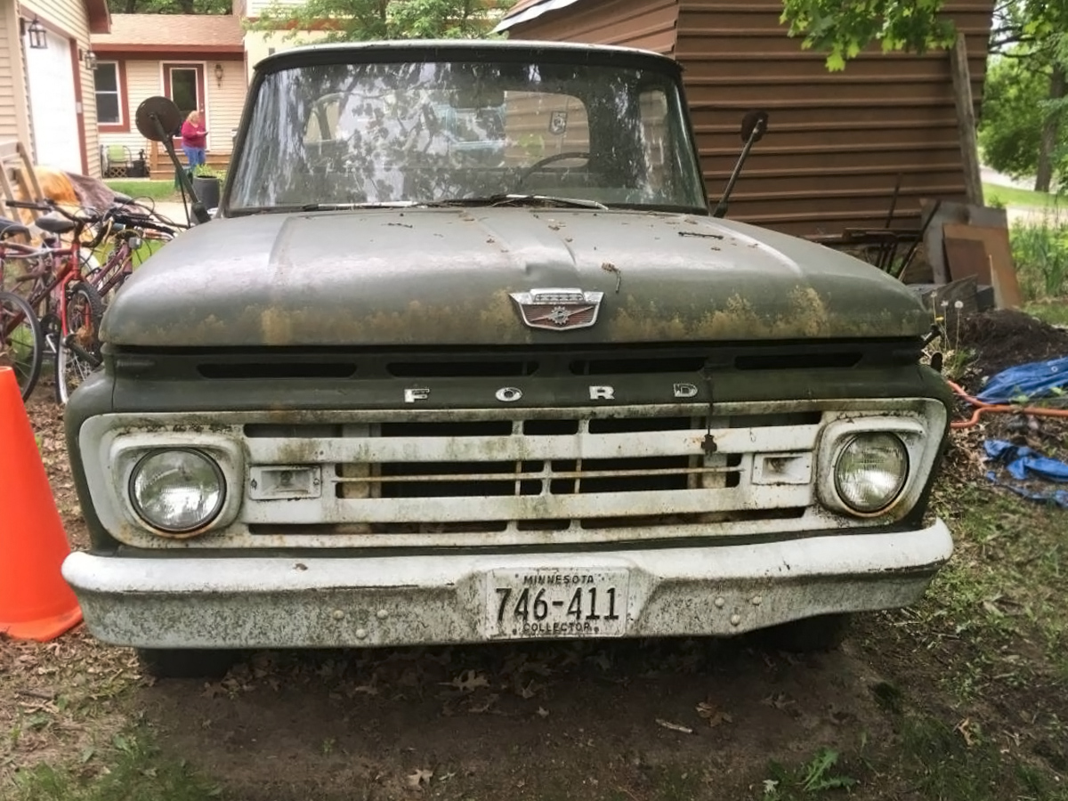 Ford’s Unibody, or Integrated pickup, finds always reel in a few comments about how the doors buckled when they were loaded and how they aren’t real trucks for manly-man truck duties – insert grinding guitar sounds here and gritty, dust-filled loads of heavy materials falling into the backs of pickups in slow motion on new truck commercials. My thought is always, don’t haul heavy loads. Next argument? If a 1962 Ford F-100 Unibody pickup is a person’s only vehicle for year-round use for absolutely everything they do, that’s both super cool and super unfortunate at the same time. This great looking project truck is here on Craigslist in Coon Rapids, Minnesota with an asking price of $1,999. There is no need for a CL Ad Saver on this one, these are the only two photos of it, unfortunately. I don’t know if I have ever seen a dark green Unibody but I really like it. The wheels not so much, but that’s just me.