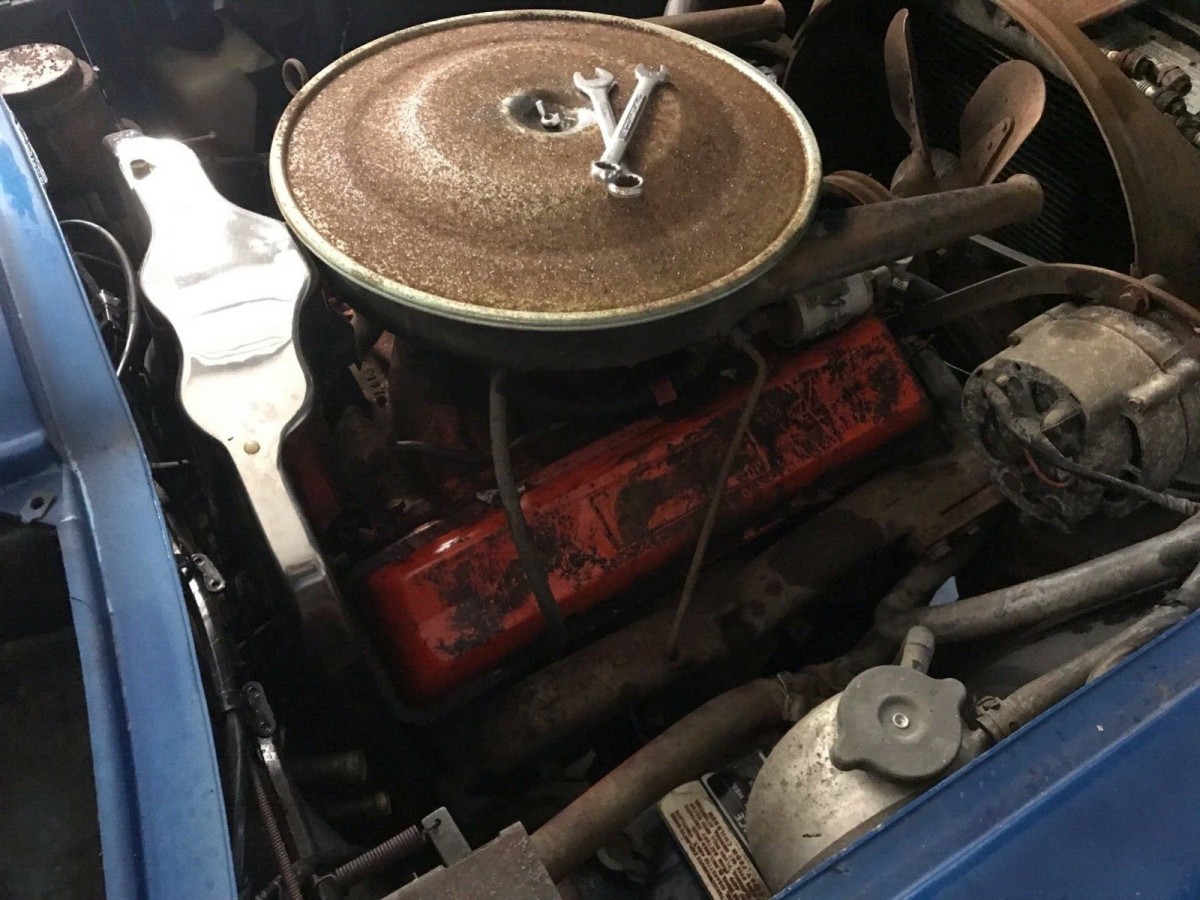 If the corroded items inside the Corvette were the tip of the iceberg, opening the hood reveals a little bit of what could potentially be below the surface. There are a lot of components in the engine bay that carry some pretty significant surface corrosion. The most obvious of these is the air cleaner, although there is also plenty visible on the intake, the radiator and its shroud, the fan, and virtually every bracket in the engine bay. What we also find is the fact that the Corvette is said to be a numbers-matching car, with the L76 version of the mighty 327ci V8 that was capable of pumping out 300hp when the car rolled off the production line. This is backed by a 4-speed manual transmission, and at its peak, this combination would have allowed the Corvette to storm through the ΒΌ mile in 14.6 seconds. The owner says that the 327 does not currently run, but he also doesn’t indicate whether it turns freely. If it does turn, then it might not take a lot of work to get it to fire into life once again. However, it is also possible that a rebuild might need to go onto the “to do” list due to how long everything has been sitting.