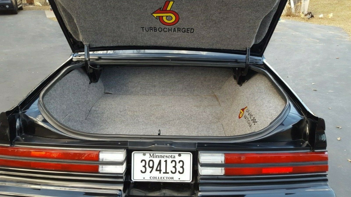 Looking long and hard at the photos of the Grand National reveal a car that is in pretty impressive condition. I can see something strange right at the front of the rocker on the driver’s side, but I’m pretty sure that it is only a leaf stuck to the car. The owner says that the Buick has only covered 19,122 genuine miles, which is certainly conceivable when you look at the vehicle as a whole. That menacing black paint has a great shine and depth to it, while the factory wheels appear to be clean and faultless. This photo of the trunk seems to indicate some staining of the trunk mat on the right-hand side, but this could also be a trick of the light. The trunk is also home to the original spare tire and jack.
