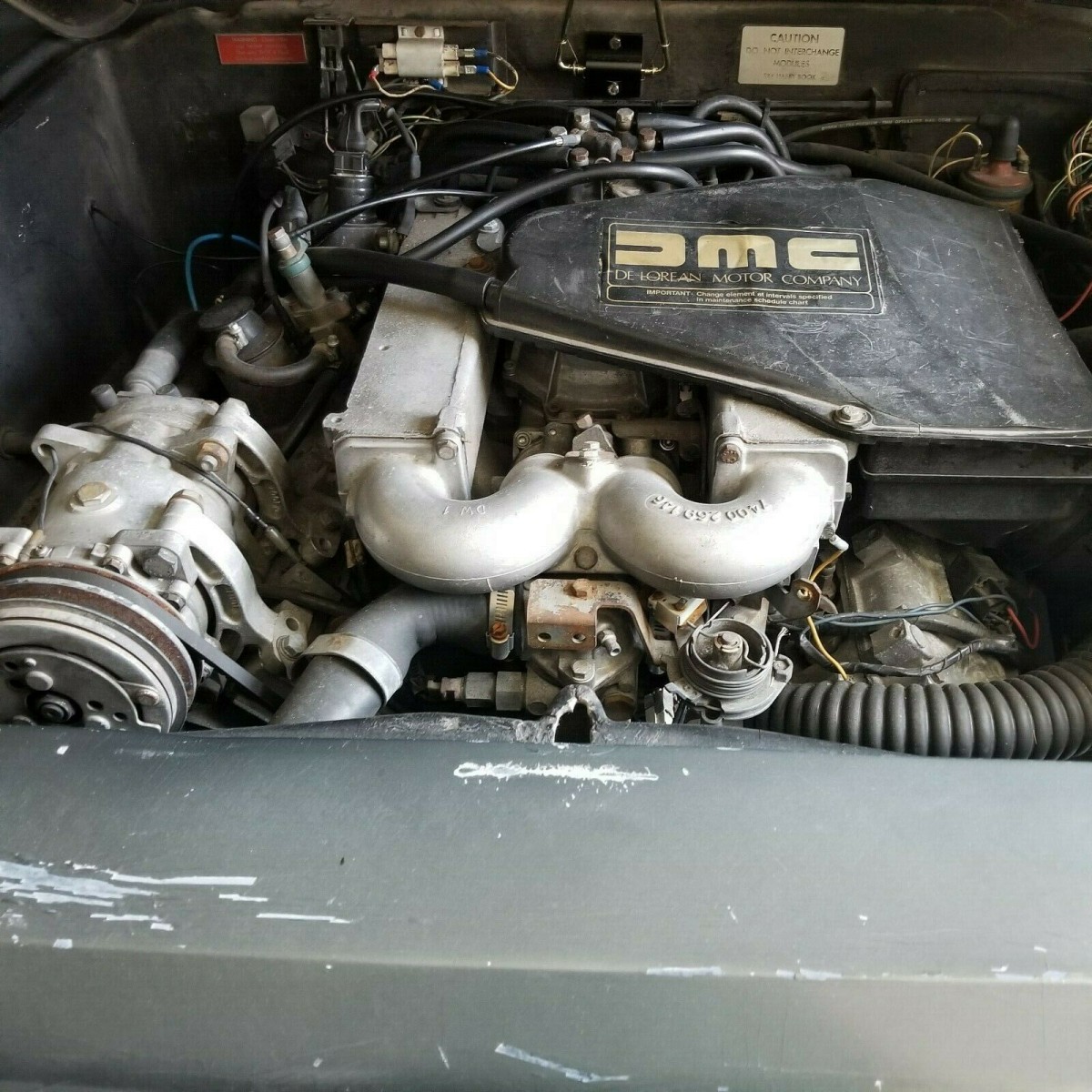 DeLorean Motor Company (DMC) built all their cars with a 2.85 liter SOHC V6 engine that produced 130 horsepower and 153 lb-ft of torque. The engines were produced by Peugeot-Renault-Volvo and sold to DMC. It is kind of shocking to think that John DeLorean approved this drivetrain choice. While the car looks great, John DeLorean of all people knew that the power under the hood needs to match the looks. Based on people I have talked to, the DeLorean was underpowered from the factory and a stock engine is not too exhilarating to drive today.But at least this one is a 5 speed which is more fun than an automatic.