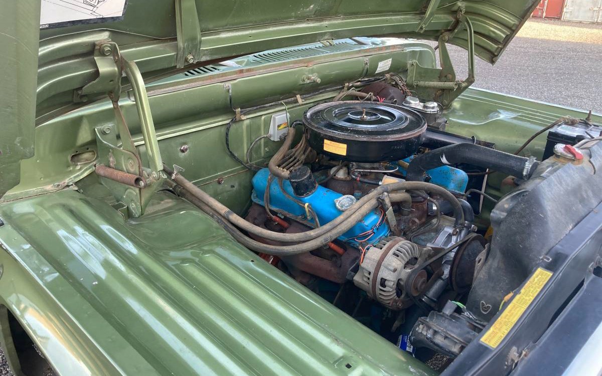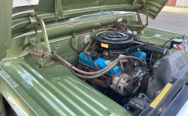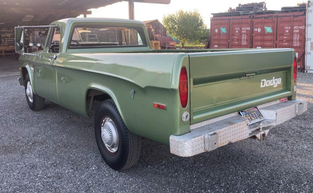 The engine is Dodge’s 318-cu.in. OHV V8, according to the VIN. It would have had 210 horsepower, and the seller says that after over 40 years of hibernation, this one has a new “Water pump, fuel pump. Removed, cleaned and coated original gas tank. Brake master cylinder, all wheel cylinders. Changed spark plugs (still had the original plugs with a little bit of blue overspray on them).” The 318 is backed by that four-speed manual sending power to the rear wheels, and they don’t say how it runs and drives, but I’m assuming it does both well. Have you ever seen an original pickup in this kind of condition?
