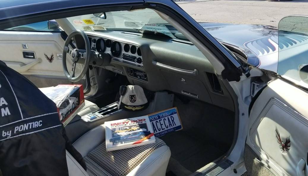 A look inside reveals that the entire interior has been pampered as well. The combination of vinyl and cloth seats shows little wear, especially on the driver’s seat bolster. This is where you always see stuffing popping out, as the car is low, and most posteriors are drug across rather than plopped into the center. We are told that everything works as it should. The pictures reveal a large amount of memorabilia from both the Indy 500 that year and items specific to this car, and all of this will go with the car when it sells. The seller has also had the car signed by George Barris and Burt Reynolds.