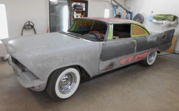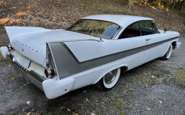 Besides the 4-door at the roots of this project, the seller also needed a bunch of 2-door sheet metal from a 1957 Dodge Regent. Both cars were part of Chrysler’s “Forward Look” movement from 1957, so there was some interchangeability. Apparently, the builder took the roof, doors, and quarter panels from the Dodge and grafted them onto the Plymouth at the factory seams. As it turns out, the Plymouth was previously a one-owner family car that had traveled 87,000 miles.