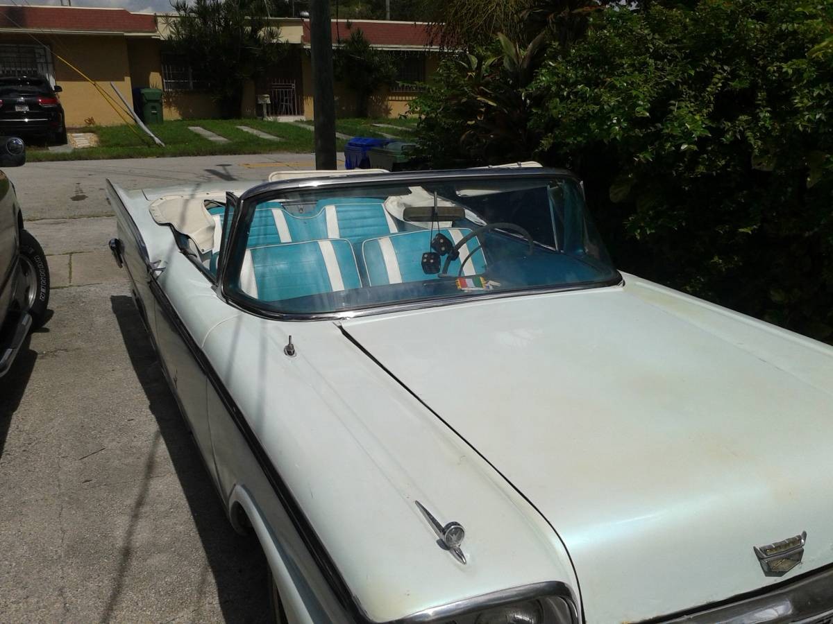 A pretty good deal (finally) if you can negotiate the price…..lots of unknowns and luckily on the wrong coast…………Back in the early nineties I looked at a ’59 Ford convertible in turquoise that was absolutely original and perfect with the original plastic seat covers……..and didnt think it was worth the 11K ask ! I am soooo cheap and consequently sooo……. wrong…..lol