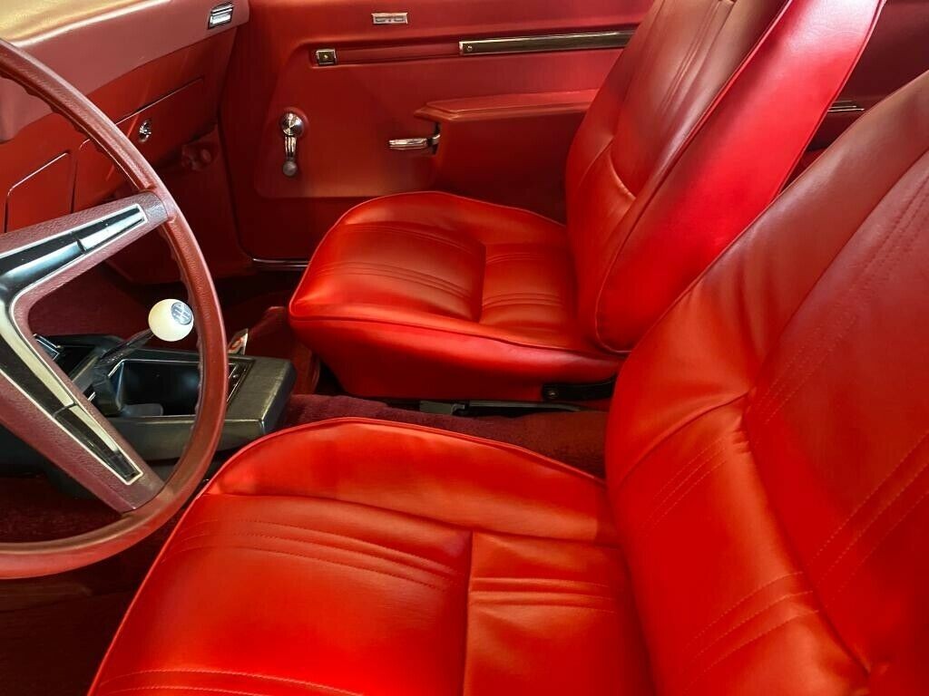 At first glance, this one really pops, but upon a closer examination I find: pitting on GTO door emblems, dome light cover on floor(probably broken tabs), package tray is extremely warped, screws missing from console; Minor details, but give this one a personal look over. I like the looks of the one in the brochure picture w/ the chrome trim around the windows and the bumper guards/strips. GLWTA!! :-)