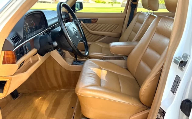 Now, even though Mercedes products from this era are known for having interior materials that are incredibly durable, this is still the interior of a car that has been doted on since new. You can just tell by the way the leather still shines, the wood trim looks like new, and the carpets are thick and stain-free. The seller notes the current owner bought the 420SEL in 1999 and has kept in mint condition ever since, and that there are no discernable flaws in the Palomino interior (one of Mercedes’ best interior color schemes.) My dad had a 1987 model in the early 90s, and his car didn’t look nearly this nice inside. That’s a testament to how both owners of this example have clearly gone to great lengths to protect the cabin materials.