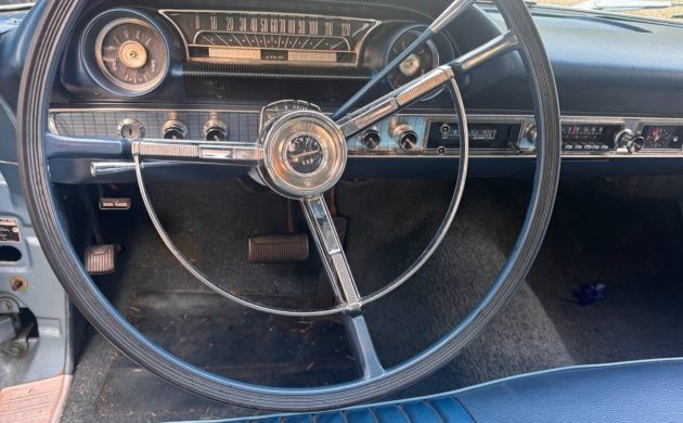The car is somewhat camera-shy, so we only get to get to see portions here and there. For example, we view only the dashboard in the interior, so we don’t know the condition of the upholstery or carpeting. This could be a nice vintage car for someone who doesn’t mind four doors and having the try to coax a shine from the fading blue paint. Thanks for the cool tip, Barn Finder “Scott”.