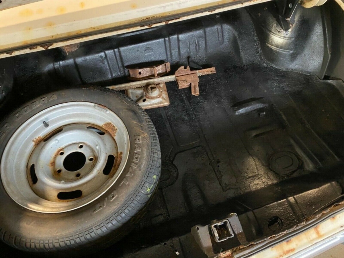 Except for the glamour shots provided, the car is said to have never seen snow or road salt. The paint is thought to be original except for the front fenders (we don’t know why they were singled out) and you’ll find some surface rust in a few places that could even have gone through the metal (lower right front fender, for example). We’re told the underside is solid and the photos support that, although there is a little rust in the front floors. The interior has seen better days as we suspect the front seat is covered up for a reason. The door panels look a bit worn along the tops.