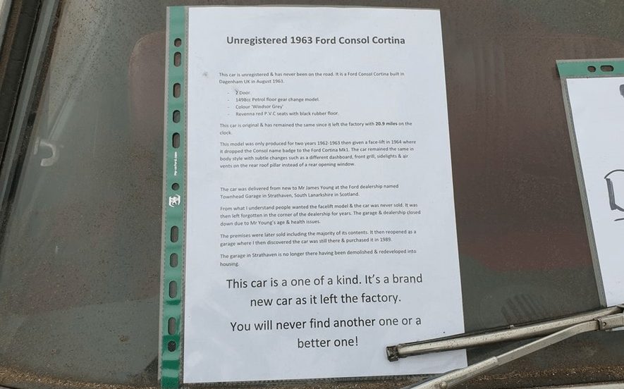 No, you can still find clapped out old 60s Cortinas that would be more suited to chopping up. With only 20 miles on the clock, this is a museum piece once restored.