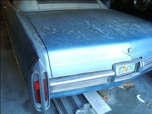 There aren’t many pictures provided in the ad. A peek at the right side and engine would be nice. It’s hard to tell how bad the paint is under all the dust but the trunk certainly looks grim.