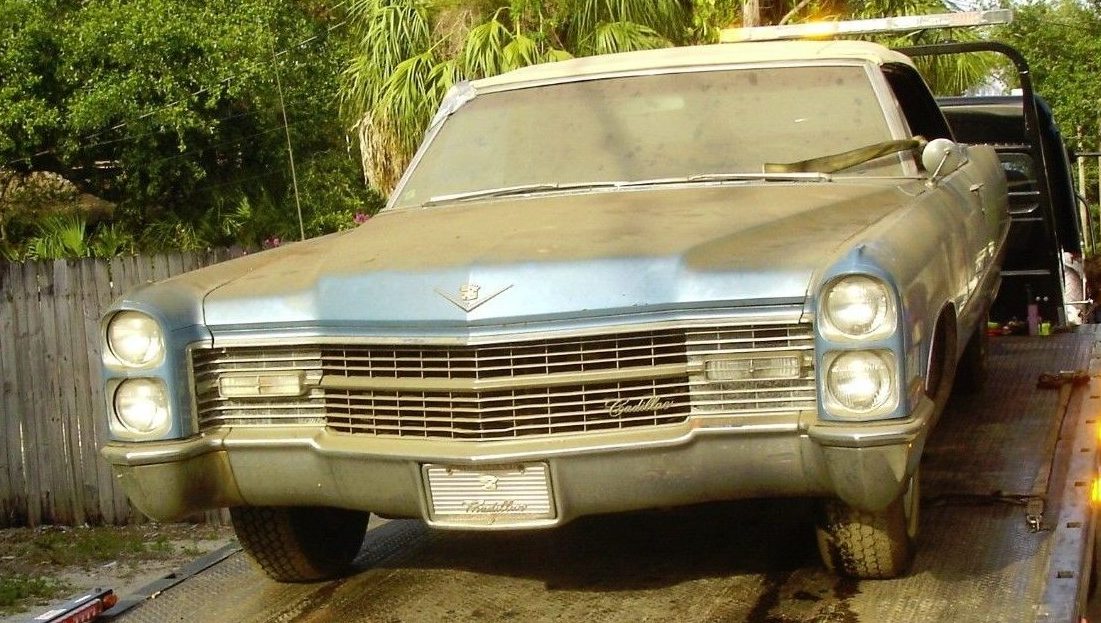 The top was replaced shortly before the Cadillac was stored and the back window is glass so perhaps all the top will need is a good cleaning. A peek of the interior would be nice, but it’s not likely a pretty sight. Twenty years of Florida moisture and possible critter infestation have no doubt taken their toll, especially as it seems to have been stored with the window down.