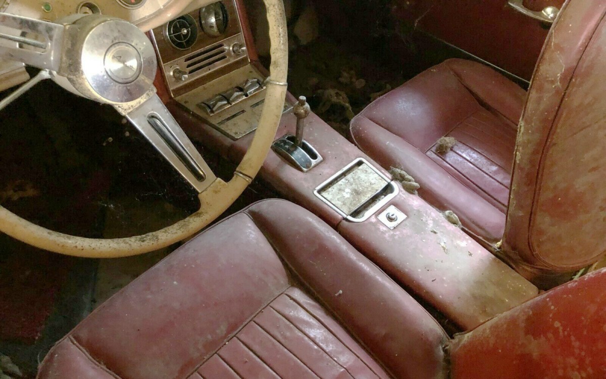 A lot of the work will come down to repairing this engine, which I believe would be Studebaker’s 289 cubic-inch V8. From what I understand, this isn’t a supercharged car with no hood vents and seeing the AC compressor there. I don’t believe that a person could get AC on a supercharged car but one of you will know for sure. I have heard of supercharged cars having AC but whether it was from the factory or not I don’t know. In any case, this engine is partially disassembled as you can see. From what you can tell by looking at the photos, can this car be saved while not breaking the bank during restoration?