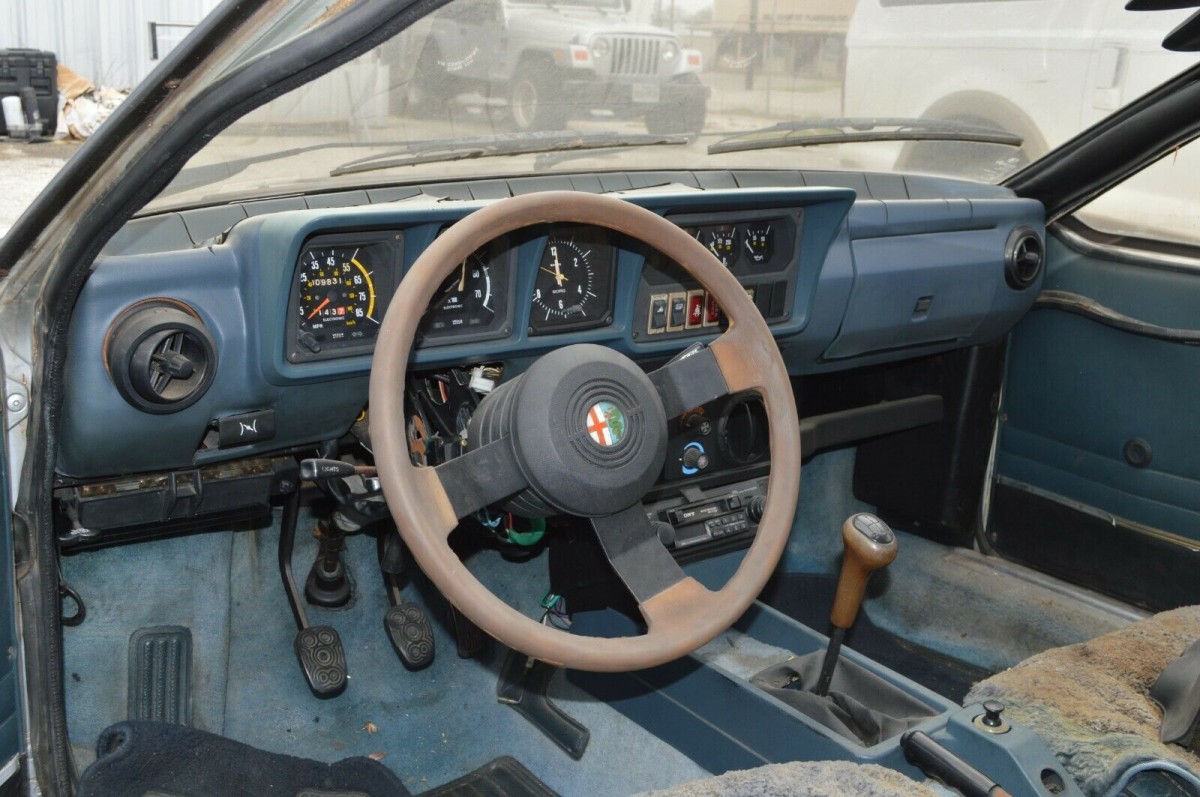 Even with the long-term ownership history, it’s clear to me this GTV6 has been left neglected for some time. The interior isn’t awful but it has seen better days, and the dash is completely trashed by cracks. The OEM steering wheel and shifter remain in place, but the steering wheel itself is worn right on down through the departed leather wrap. Blue was a typical interior color scheme for the GTV, and the matching blue carpets seem to be in decent shape. No photos of the seats are provided, which would be my biggest concern as nicely preserved GTV buckets are worth a fair price given their Recaro-like appearance with thick bolsters around the torso and the thighs.