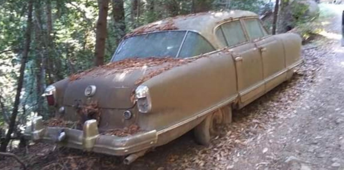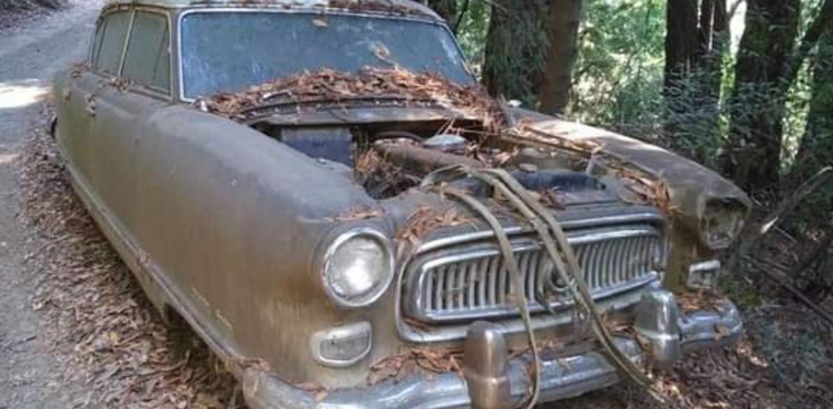 The seller’s car, for which the actual mileage is unknown, looks like it was either left alongside the country road where the photos were taken or it was pulled out of someplace else and left there, given the straps around the engine. The hood is missing. There are hints of rust in several places and we wouldn’t be surprised if it goes deeper. The car was likely powered by a 253 cubic inch inline-6 that was rated at 130 hp with a single-barrel carburetor and a Hydra Matic transmission. So, it was much more a cruiser than a pocket rocket. But you did it in style as the Custom had two-tone upholstery with foam-topped designer seat cushions. Although we don’t know if this car was so equipped, the Nash Ambassador was the first American automobile to have a front-end, fully integrated heating, ventilating, and an air-conditioning system called Weather Eye. This was designed by Kelvinator, which was part of Nash at the time.