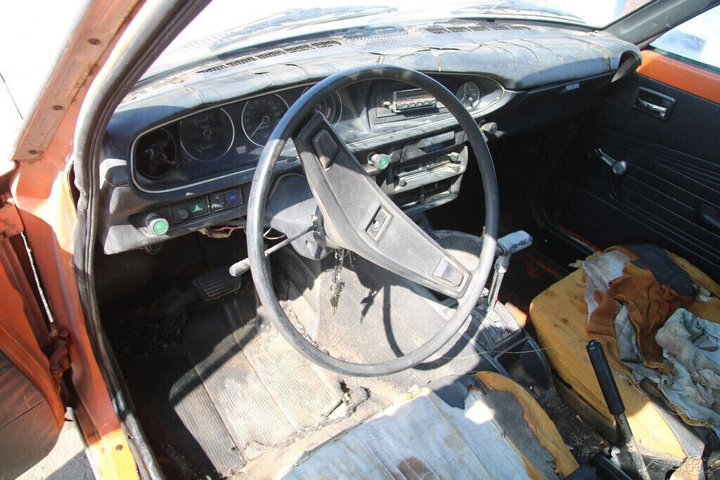 The 710 is in rough shape. The seats are shot, the dash is cracked, and the carpets are non-existent. On top of that, it’s an automatic, which is only going to dampen interest further. Of course, there’s a limited market for these, so anyone who is on the hunt for one likely isn’t going to be picky about the transmission choice. I do dig the color, which may even be original given we see it inside the door jams, and it looks pretty consistent on the exterior panels.