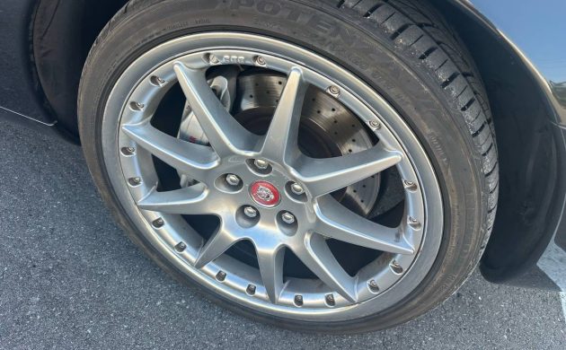 Let’s look at some of the other basics of the 2002 XKR: it comes with a supercharged, 375-horsepower 4.0-liter V-8, and a 5-speed automatic transmission built by Mercedes. Performance is strong, rocketing to 60 miles per hour in 5.2 seconds and on to a top speed of 155 miles per hour. Plus, you get a bevy of cosmetic upgrades like these slick alloy wheels, hood louvers, and a mesh grill insert up front. You can likely find an XKR cheaper, but even at this price, it’s a serious bargain. Even if it “…runs like new” as the seller claims, confirming the numbers on the block to better understand if this XKR needs the tensioner replaced before purchasing would be time well spent for the next owner.