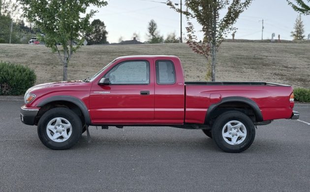 Looking radiant in Radiant Red, this 2004 Toyota Tacoma SR5 Xtracab 4×4 pickup is in the Pacific Northwest, maybe the best corner of the U.S. to find vehicles. It’s not a 100% guarantee, but they typically aren’t rusty from road salt and aren’t burnt to a crisp from relentless desert sun. The seller has this 4×4 listed here on eBay in Clackamas, Oregon; there is no reserve, and the current bid price is $14,700.