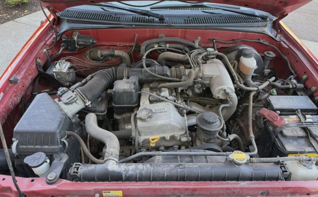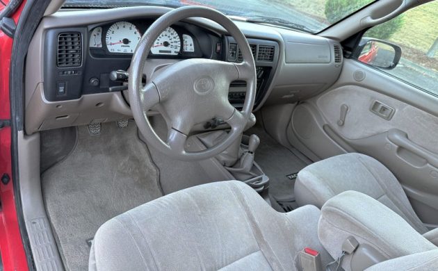 The engine is Toyota’s mama bear/middle engine, a 2.7-liter DOHC inline-four with 150 horsepower and 177 lb-ft of torque when new. Backed by the 5-speed manual and transfer case sending power to all four wheels as needed, the seller says it’s a smooth-running and driving truck and has never been off-roaded or abused. It looks like a gem to me. Have any of you owned a Tacoma from this era?
