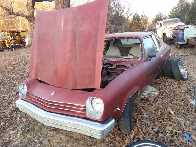 All you must have time for is running down what you can’t have or afford. 17 years ago I bought my ’76 hatchback for $1500 with 26,000 original miles. It looked identical to this one except it was an automatic. It was white with Firethorn red interior. Original red banger. Same wheels. I got it from a family who got it from the original owner. I put a couple thousand more miles on it then it went into storage for a decade. The only Vega’s with any assumed value other than those like this one are the Cosworth ones. So it now has a 350 Chevy, Muncie 4-speed and custom 8.25″ Chrysler rear axle. And it’s on the way to becoming a Motion Super Vega clone. I have a 454 and a modified NP440/MY6 4-speed to go in behind it. It has S-10 front brakes.