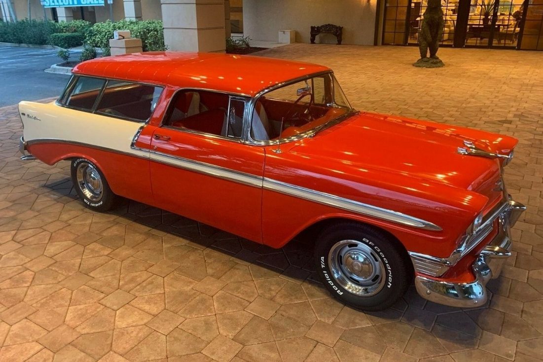 With a genuine and documented 20,000 miles on the odometer, this 1956 Chevrolet Nomad has the looks that would knock your socks off. The current owner has made some minor changes to the car to improve handling and comfort, but returning it to its completely stock and original state is something that the next owner could literally achieve in a single weekend. This absolutely beautiful Nomad is located in Sarasota, Florida, and is listed for sale here on eBay. Bidding has now reached $31,100 in a No Reserve auction. And let me tell you, the bidding has been pretty lively up to this point.