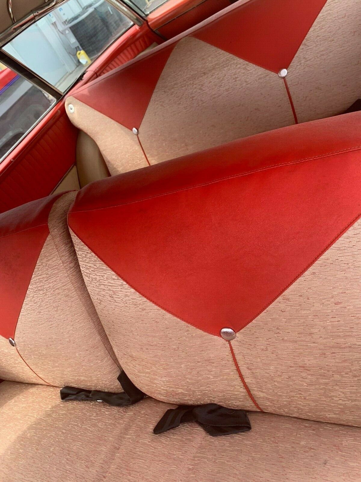 When it comes to original survivors of this sort of age, one of the greatest indicators of careful ownership is the interior trim condition, and here the Nomad definitely doesn’t let us down. The original Red and Ivory trim looks virtually new, and it is just another stunning aspect of the car. The owner states that the upholstery is clean and soft, and it does appear to be free of any rips, tears, or stains. The headliner and door trims are in great condition, and even the trim in the cargo area has escaped the marks and scuffs that can tend to plague station wagons as the years roll on. The owner has fitted a vintage-look aftermarket stereo to the vehicle, with speakers mounted in custom kick panels. However, the dash hasn’t been cut to fit the stereo, and the original radio is included with the car. Similarly, the original kick panels are also included, so returning the interior to 100% original would be a pretty easy task. One nice feature is the under-dash Frost-Temp air conditioning unit. This looks absolutely perfect for this car, and would certainly make life quite pleasant on those hot Summers days.