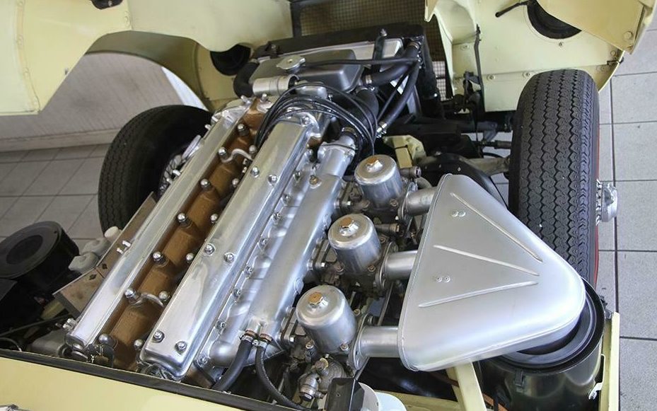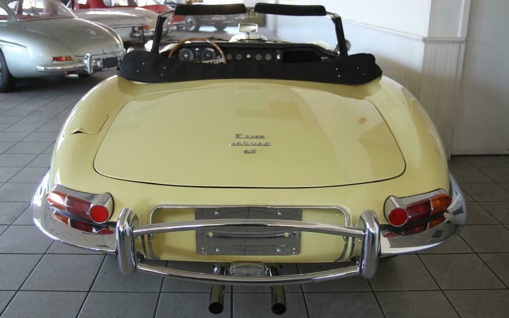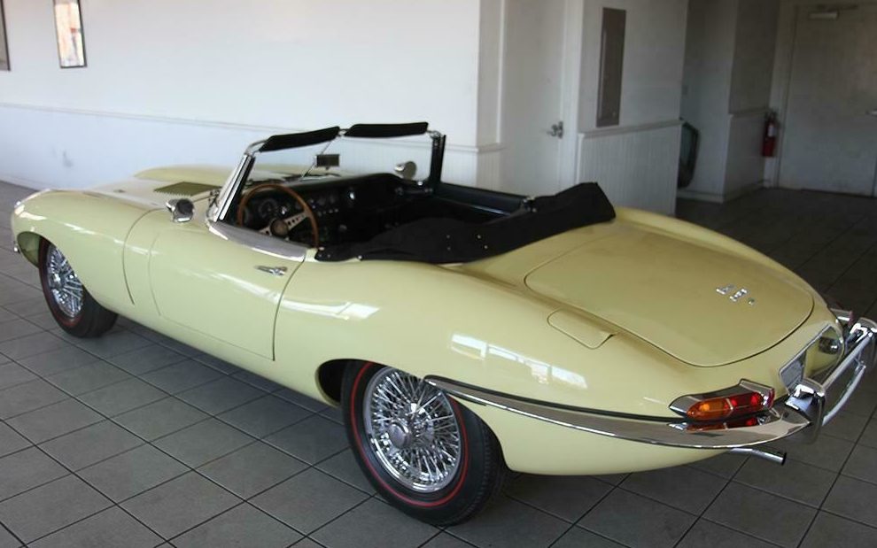 The red-line tires do look great with the Primrose body, but they are not “correct” for an E-Type from an authenticity perspective. These tires came from the factory on the Triumph TR6 in the same 185-15 size, so people have been putting them on E-Types for decades. They just weren’t factory original to the Jaguar.