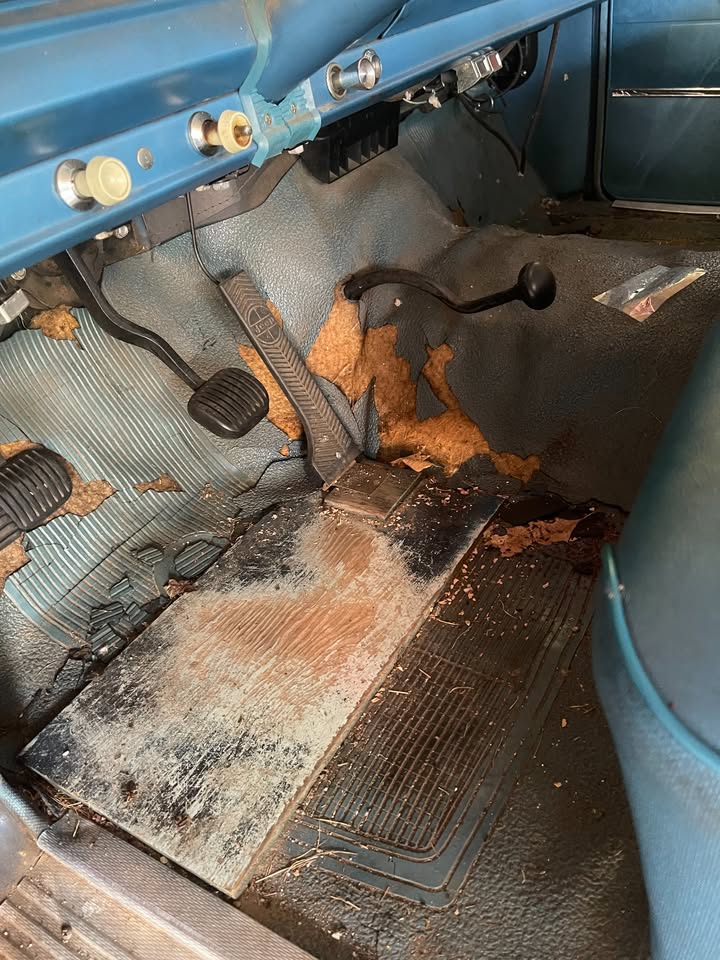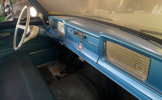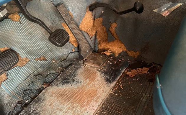 It could certainly use a new mat (or carpet if you want to splurge), and the clutch pedal lying on the floor tells me that you’ll be dealing with the driveline a little bit once you get the engine running.